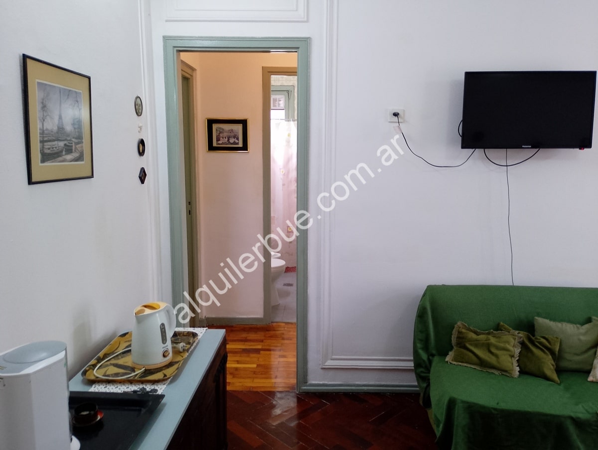 | Living 6 X 4 con aire acondicionado. Amoblado con mesa y sillas de comedor, amplio modular con gran capacidad de almacenamiento, 4 sillones. Cuenta con TV LED 32. Segunda heladera. Vajilla completa p/6 personas. Vista abierta a pulmón de manzana y edificios de Puerto Madero Amplio Hall de Entrada que cuenta con amplio placard. | |